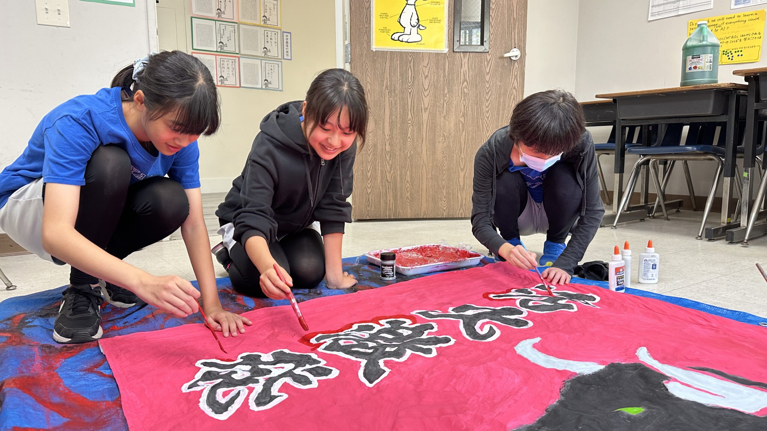 バナー作りもワイワイと